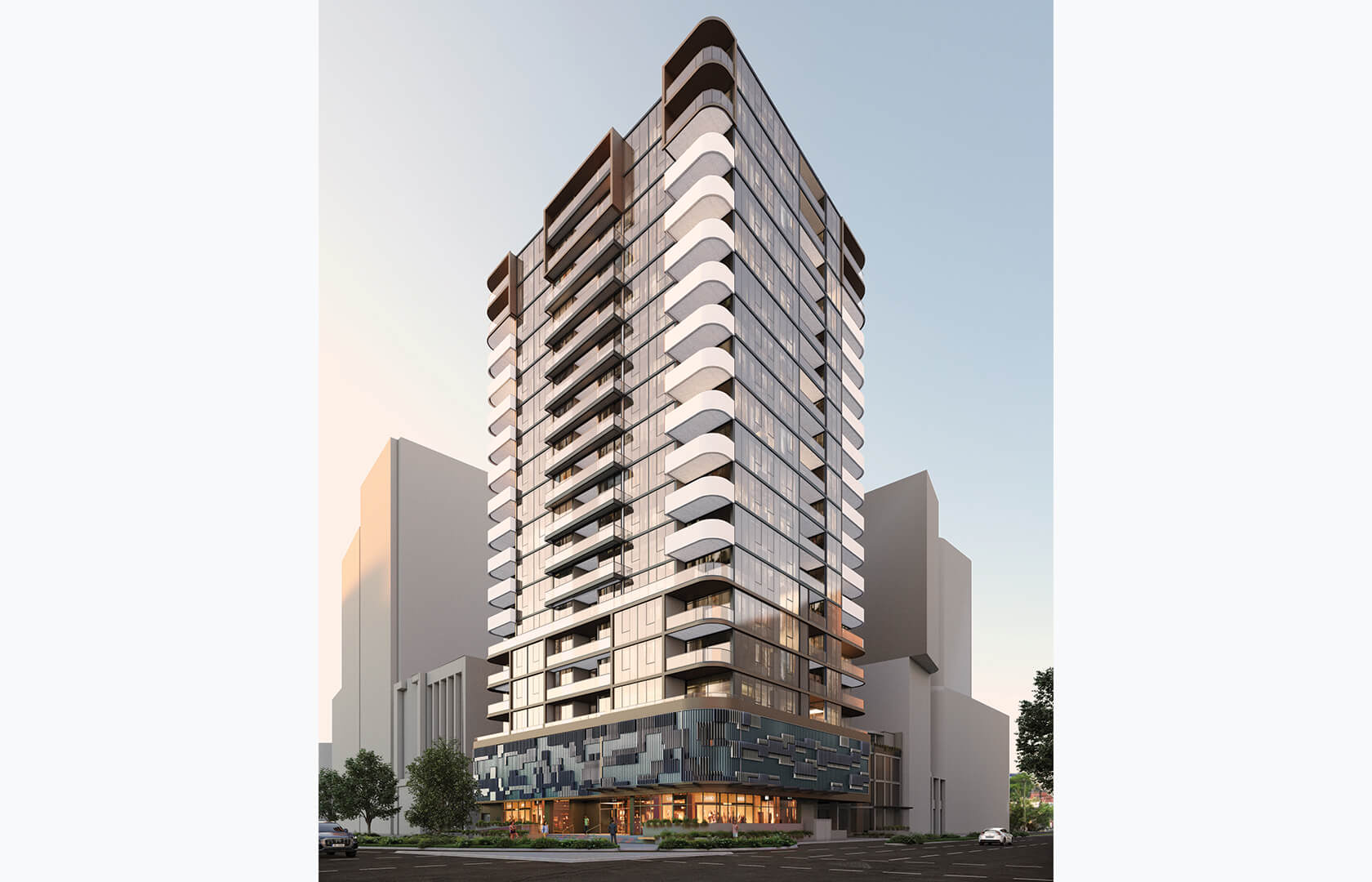Curved balconies and landscaped terraces soften the building’s interface and respond sensitively to surrounding residential scale. The design prioritises generous living, wellbeing, and connection, supported by shared amenities. Recent revisions improve feasibility, reduce overshadowing, and enhance street activation, ensuring a more contextually responsive and deliverable outcome.